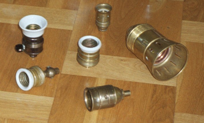 De äldsta Edisonlamphållarna, från 1800-talet och 1900-talets början känns igen på sin avskruvningsbara porslinsring i toppen. Ringen / kragen var från början låg vilket kunde göra den strömförande lampsockeln åtkomlig för beröring. De byttes successivt ut mot högre motsvarigheter, även på redan monterade äldre hållare. Så tidigt som 1921 rekommenderas det i Handbok För Montörer vid Elektriska Starkströmsanläggningar av S. Freiherr von Gaisberg i översättning av Wahlfrid Larsson (s. 201): "Vid edisonhållare måste den isolerade lamphållareringen vara så hög, att den täcker lampsockelns gängor. Inga spänningsförande delar få vara åtkomliga. Om man använder äldre hållare vid vilka detta ej är fallet, kan exempelvis i skyltfönster eldsvåda uppstå, om med metalltrådar genomvävda tyger komma i beröring med lamporna och genom metalltrådarnas glödning antändas. Sådana hållare eller, om så går för sig, endast porslinsringarna böra utbytas eller ock skyddskorgar e. d. anbringas." (Skyltfönsterexemplet kan ha föranletts av en beryktad historia, återgiven i ett nummer av ASEAs Tidning från tiden, där i elektricitetens barndom skyltmaterial nålats fast i en textilsladd varefter butiken så småningom eldhärjats...) De lägre porslinskragarna lär också ha bytts till högre motsvarigheter vid spänningsomläggning från 220/127V till 380/220V (1950-1957?) (Källa: bl a Per Wendt) Porslinsringen fick en efterföljare i den interna porslinsisolation vid gängan som verkar dominera från 1930-talet. Under 1920-talet fanns även lamphållare utan porslinsring, med ett heltäckande isolerande bakelitskikt under plåtkåpan. Ett mellansteg finns också mellan typerna med och utan porslinsring, där den interna konstruktionen är enligt den gamla modellen (en fri mässingsgänga som sticker upp från bottenplattan) medan ytterhöljet liknar de modernare, dock utan isolerad sockelgänga eftersom den helt sitter i bottendelen. Höljet är alltså ett löst mässingsskal som saknar isolering och förankring i övre delen. Man kan misstänka att den är den "felande länken" mellan ny och gammal typ. Den torde också utgöra den farligaste modellen. |