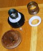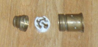 E27 med låg porslinsring isärtagen. Senast 1920-talet, troligen tidigare (saknar S-märkning som infördes 1926).