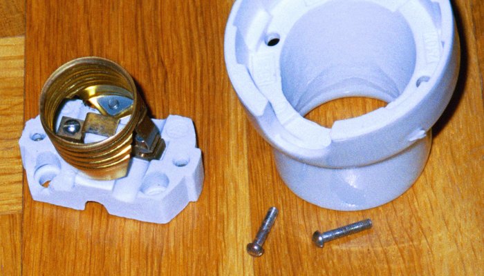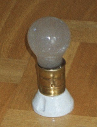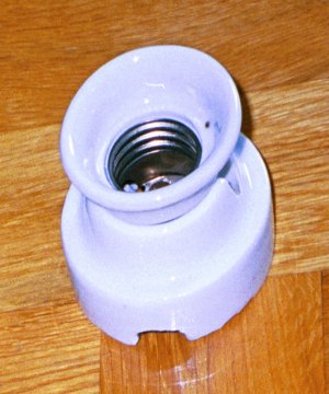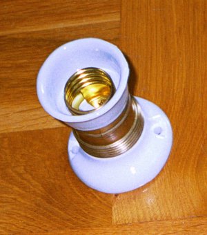 Den enklaste formen av "armatur" - lampsockel med porslinsfot för