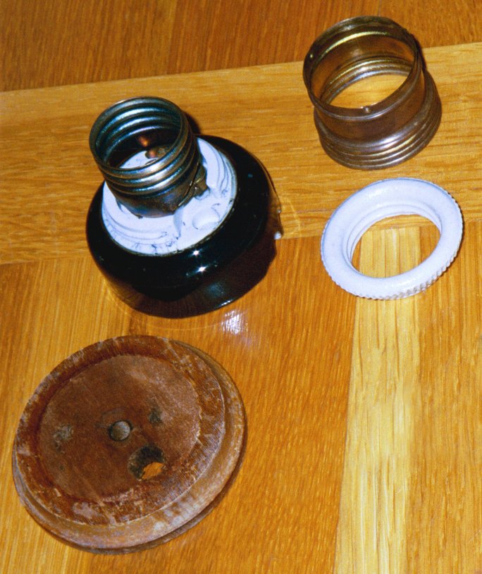 C:a 1890-tal. Höljet är på de äldsta hållarna ofta inte gängat utan sitter helt löst då porslinsringen skruvats bort.