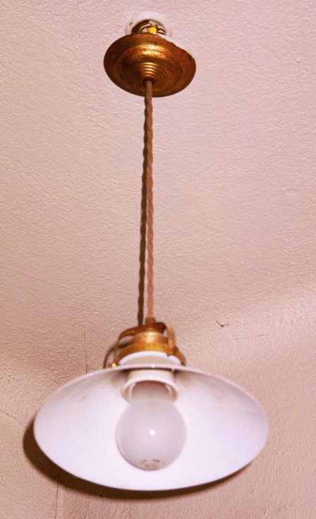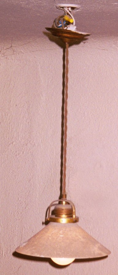 Tips: En översyn av din skomakarlampa rekommenderas - vanligen saknas dragavlastning för kabeln. Lampans hela tyngd belastar ledningstrådarnas fästning i lamphållarens kontaktskruvar! Äldre textilkabel erbjöd större tröghet och hjälpte till att fördela belastningen till mässingsskalet. Idag skulle man behöva separat avlastning i någon form, vilket kan vara svårt att åstadkomma i lamphållarens trånga utrymme. Buntband kring sladden ger en ypperlig dragavalstning (så länge det tål värmen). Slå knut på sladden kan kanske annars vara en lösning tills vidare. |