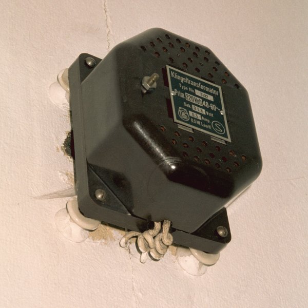 Fabrikat: Siemens Montage av en ringledningstransformator i en garderob i ett 1930-talshus. Dosan monterad på porslinstrissor och ledningarna prydligt krullade. Tänkvärt! Huset revs i augusti 2002 och jag räddade de sista elinstallationerna. De var inte det enda som var gediget gjort... Träväggar, genomtänkt formgivna handtag & fönsterhaspar etc. Trist att den sortens kvalitetstänkande försvinner. |
